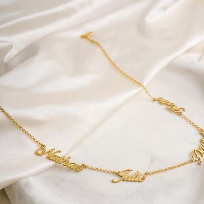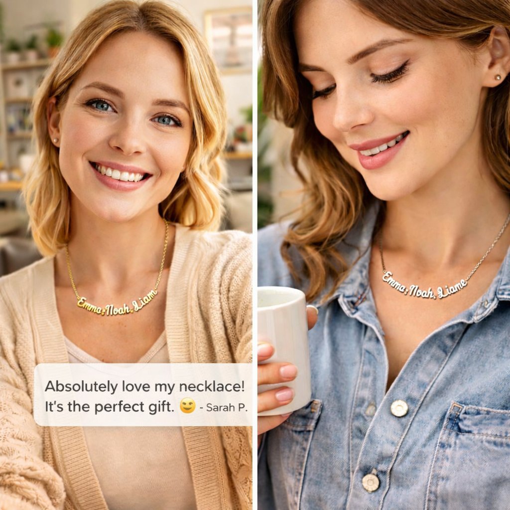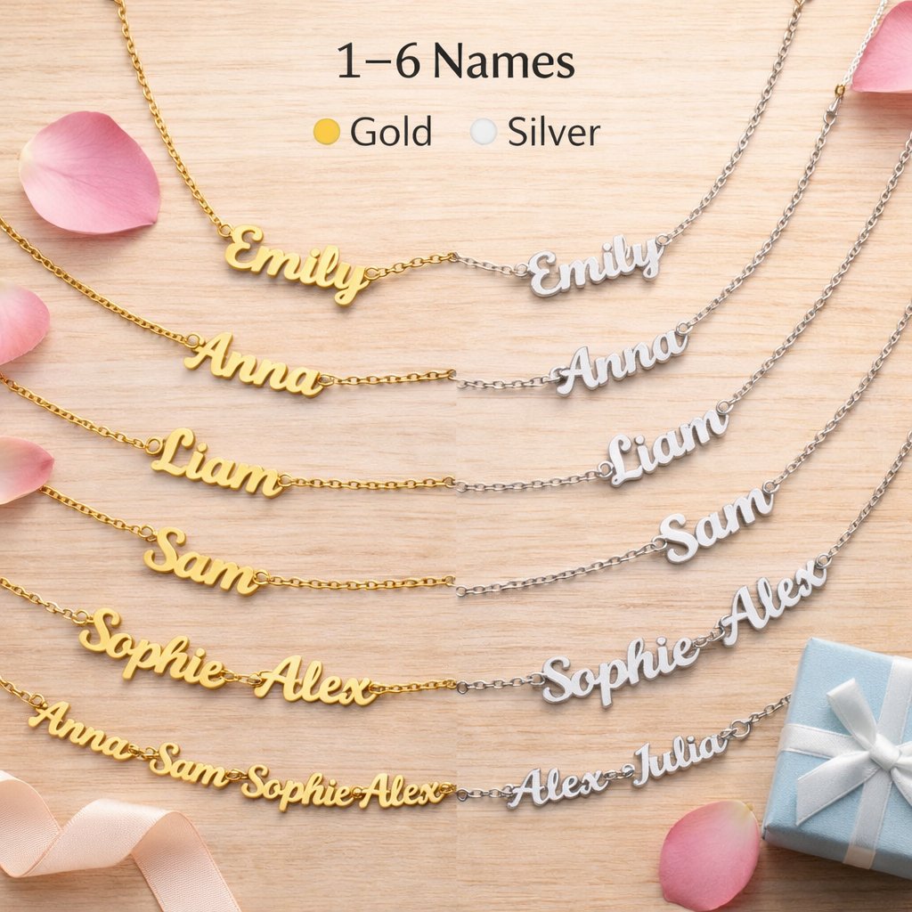 Create your personalized necklace with 1–6 names of your family, kids, or pets. Choose gold or silver and carry your loved ones close, every day.